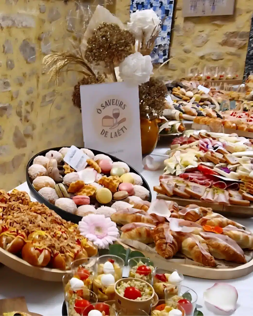 Laissez-vous séduire par nos réalisations qui allient créativité, raffinement et personnalisation. Chez Ô Saveurs de Laëti, chaque événement est une toile blanche où nous dessinons des menus uniques et savoureux, adaptés à vos besoins.